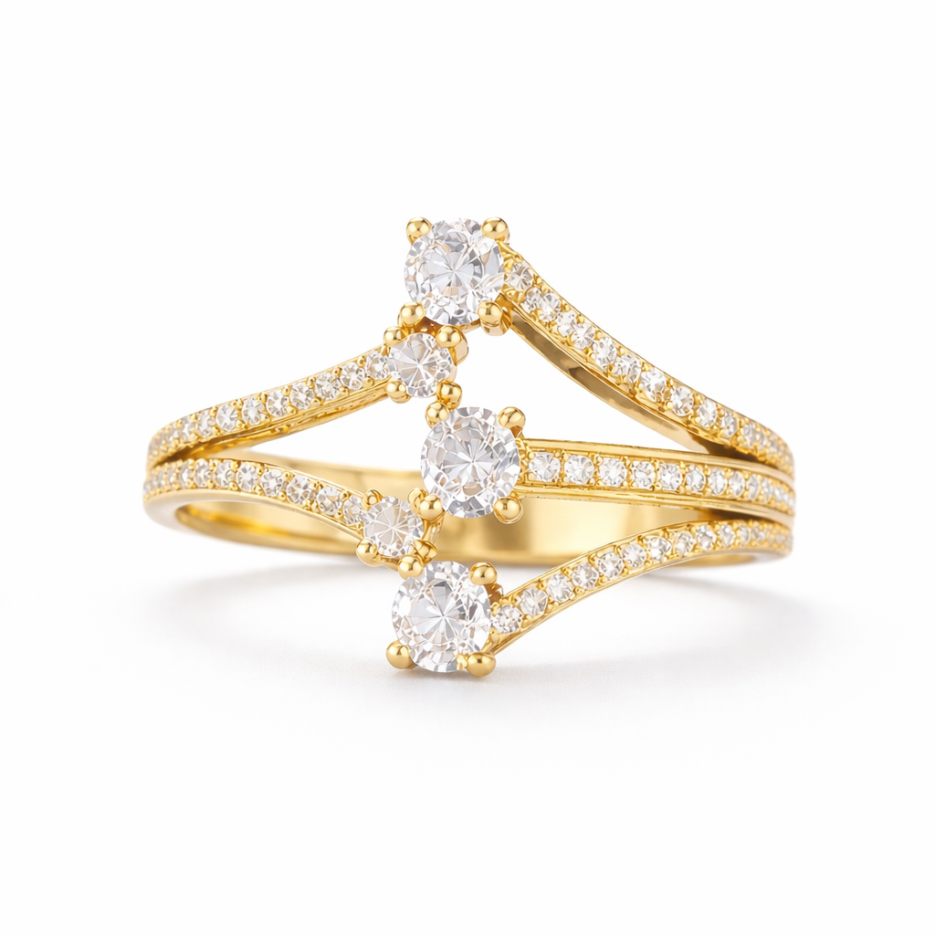 Anel Três Formas Com Pedras de Zircônias.