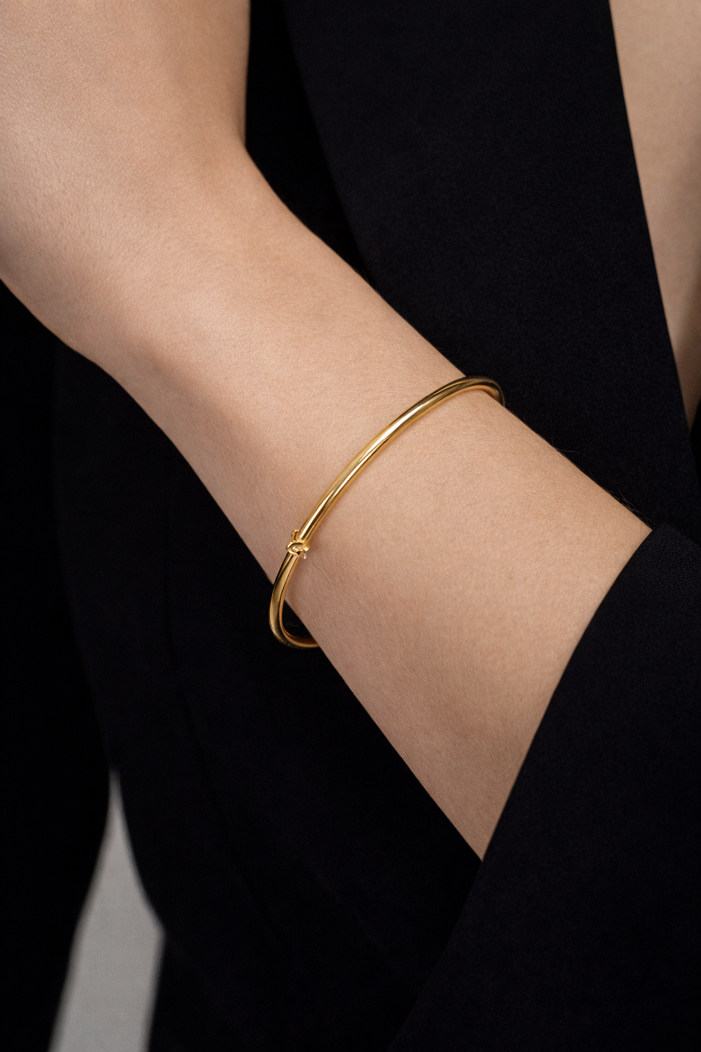 Bracelete Redondo Liso no Banho de Ouro 18K