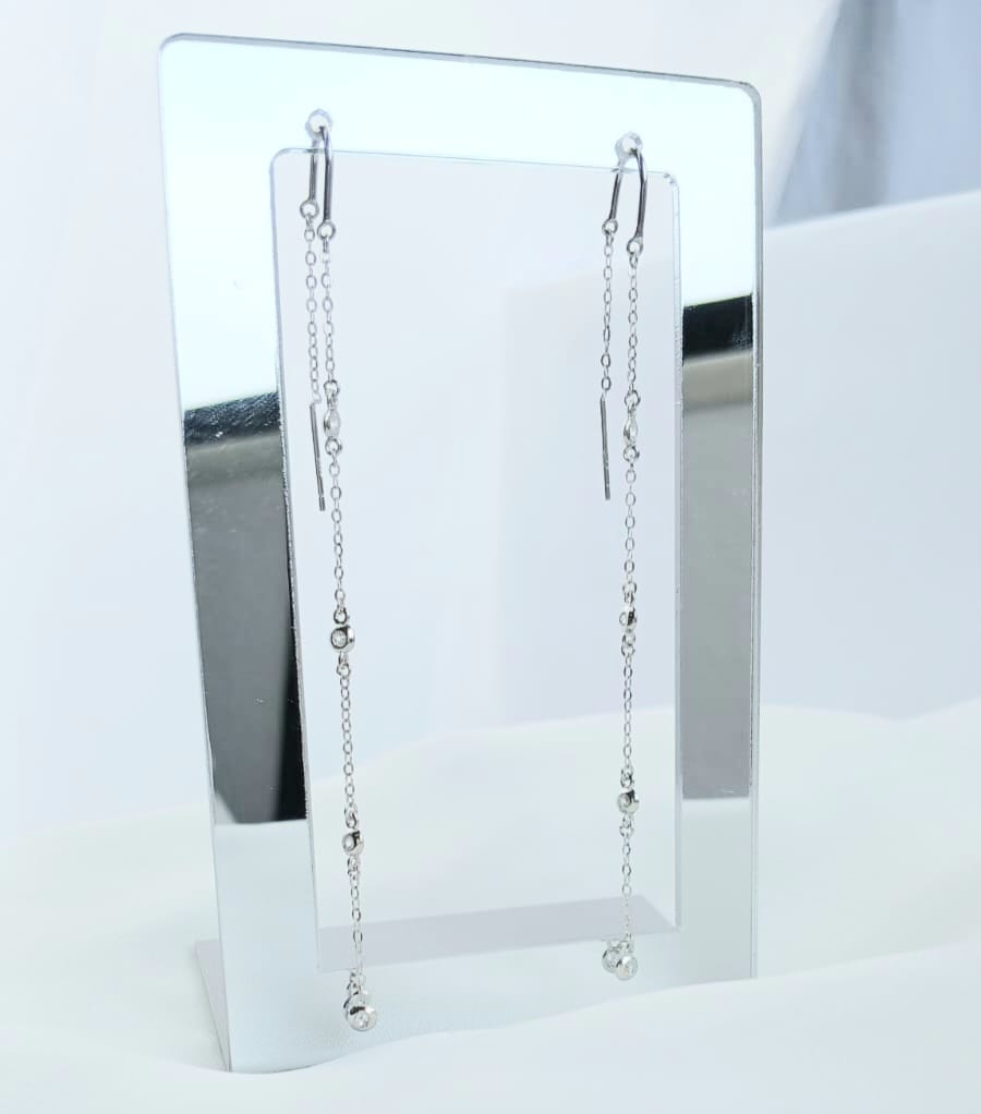 Brinco Agulha Longo com 4 Pedras de Zircônias Prata 925