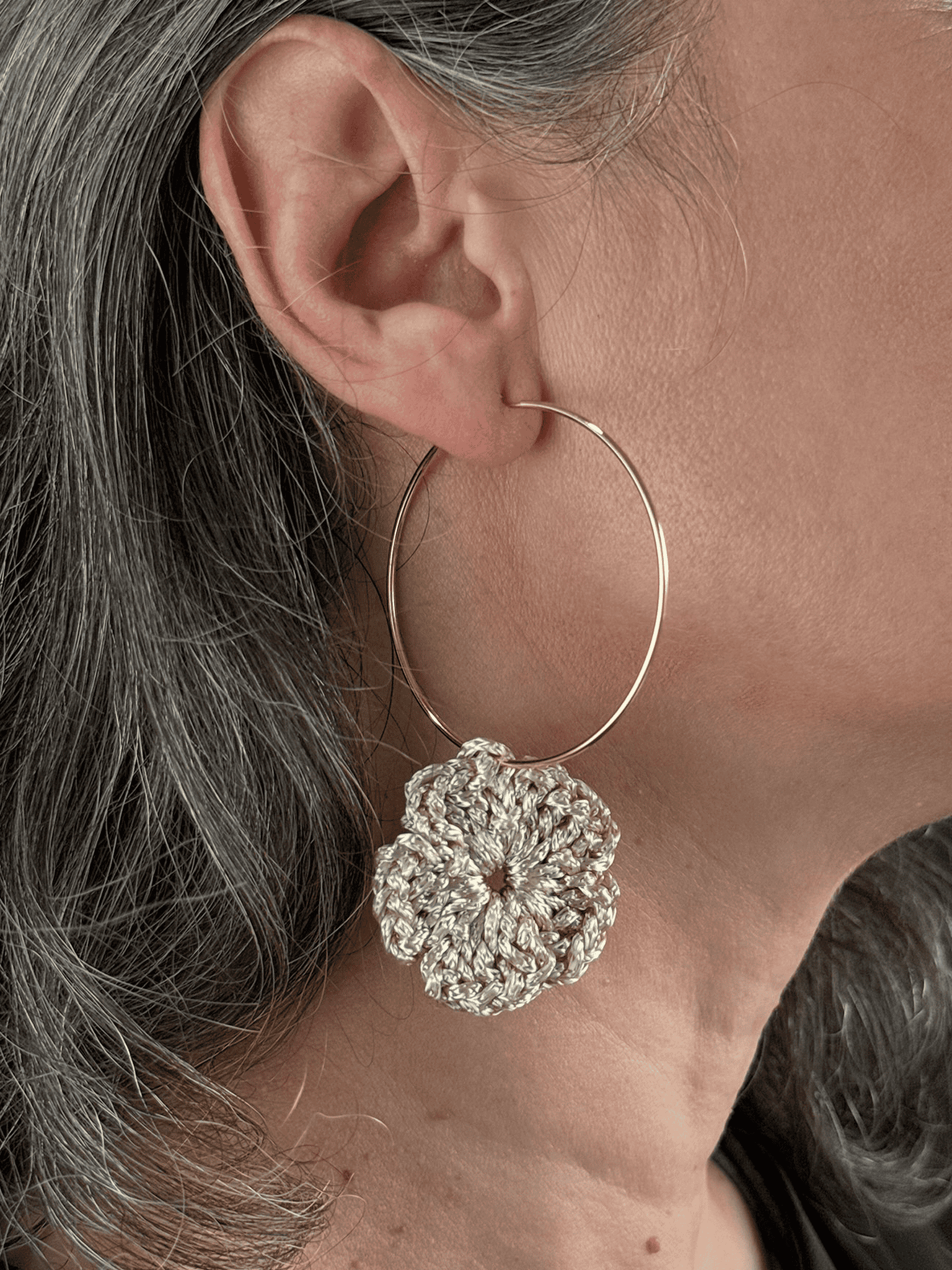 Brinco Argola com Flor de Crochê