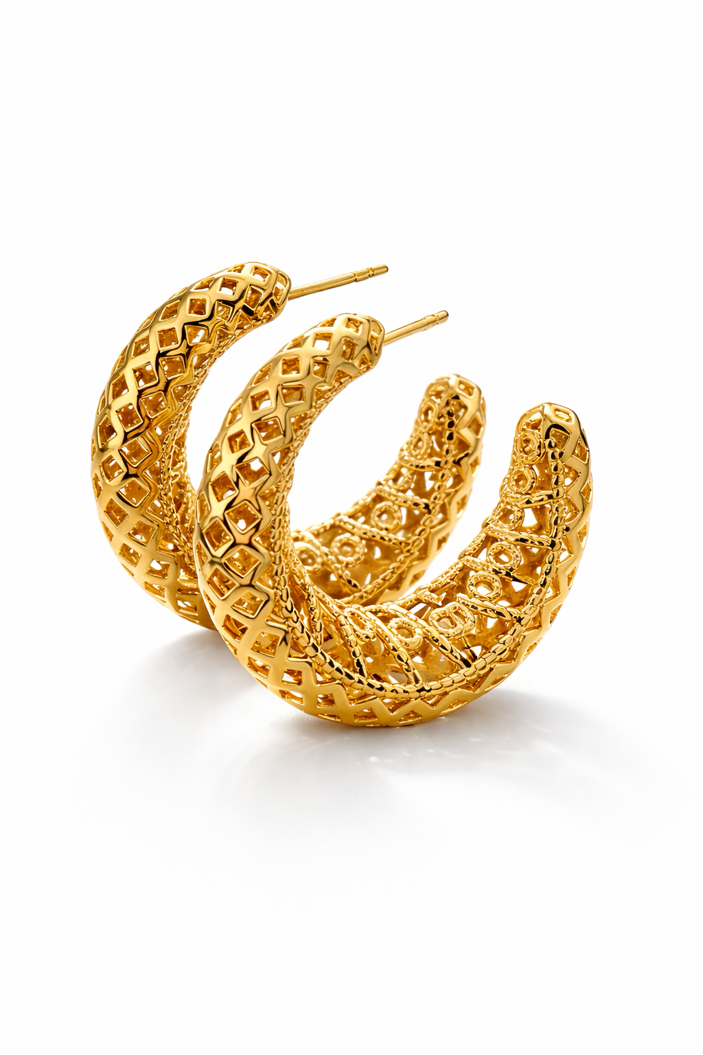 Brinco Argola com Formas Geométricas no Banho de Ouro 18K