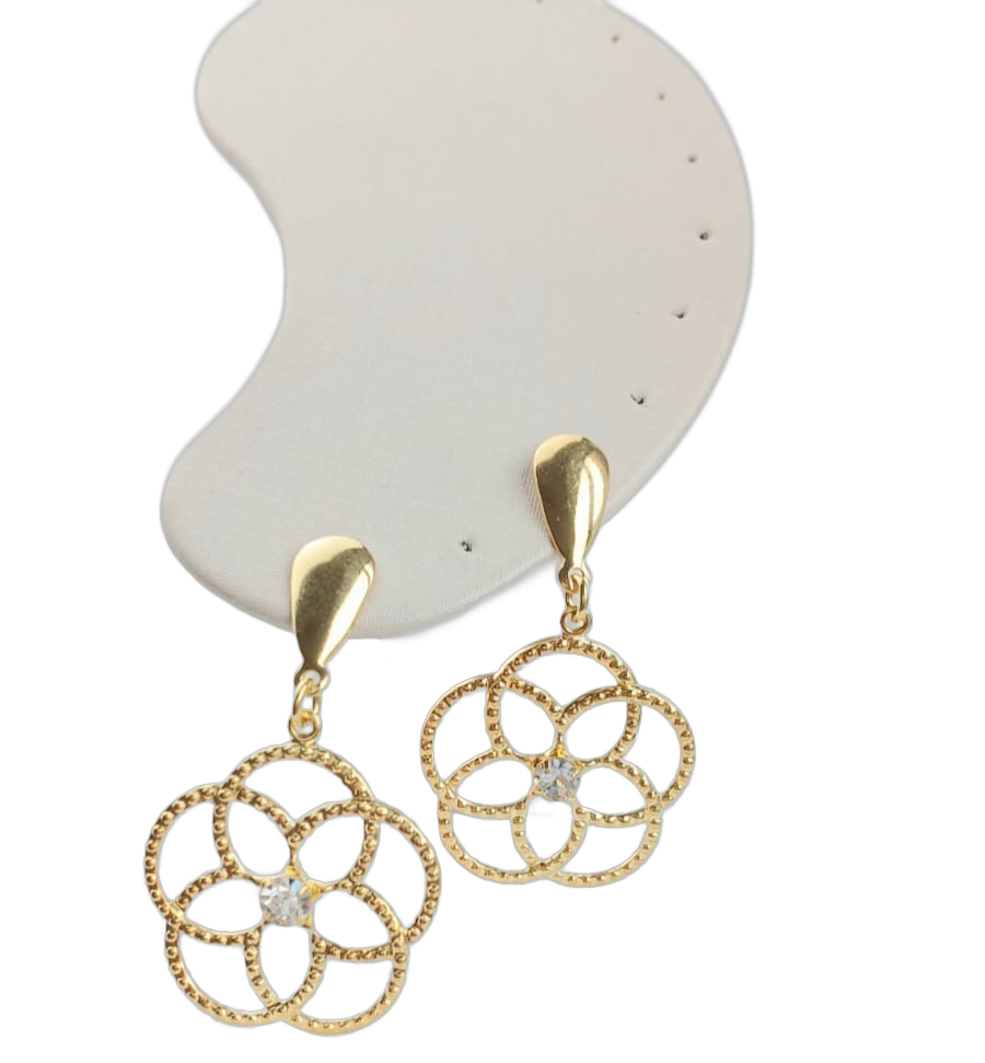 Brinco Pêndulo Flor C/1 Pedra de Zircônias quantidade