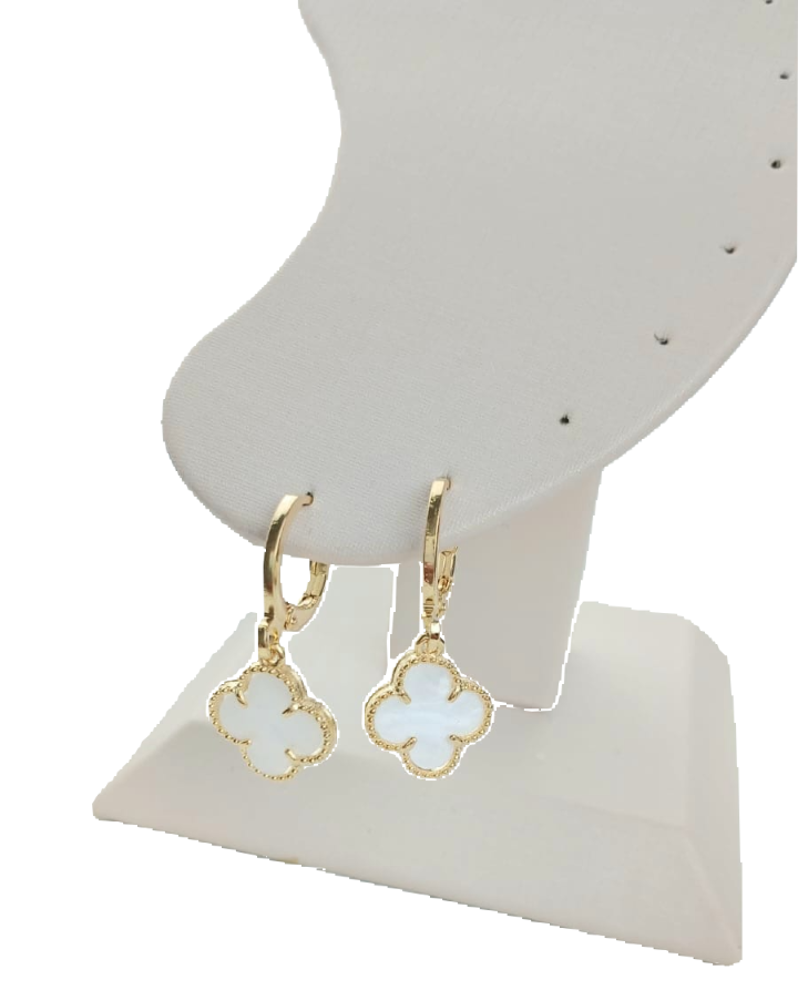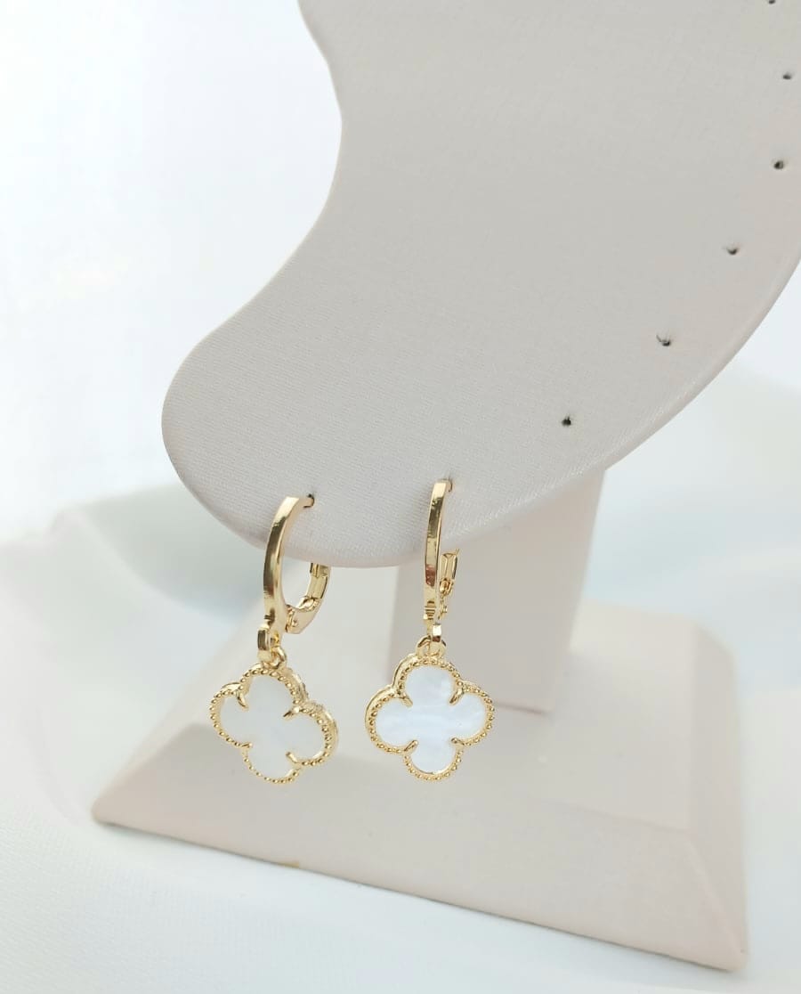 Brinco Pêndulo Trevo Banho de Ouro Cristal quantidade