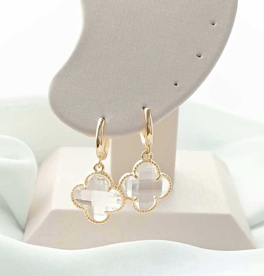 Brinco Pêndulo Trevo Cristal B.Ouro Médio quantidade