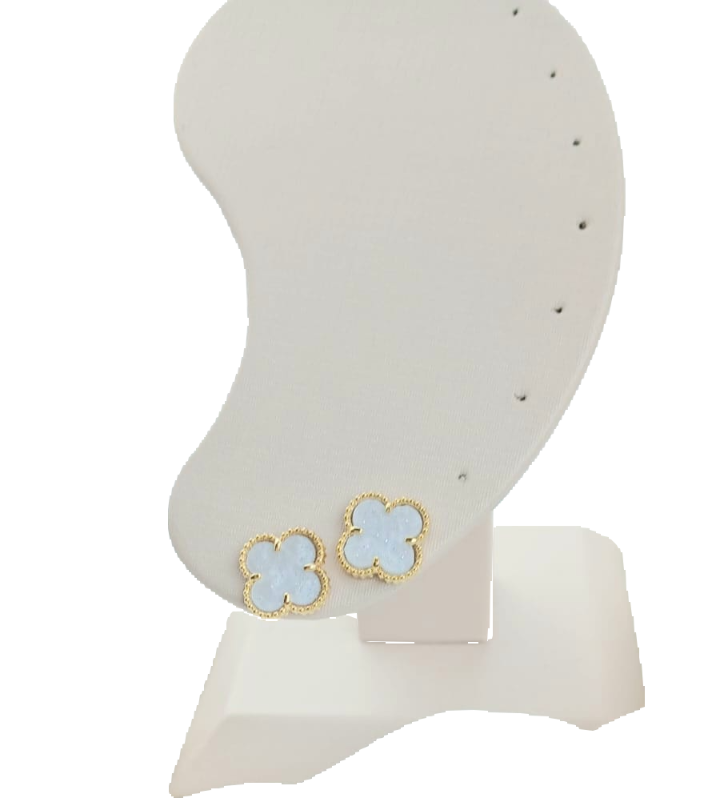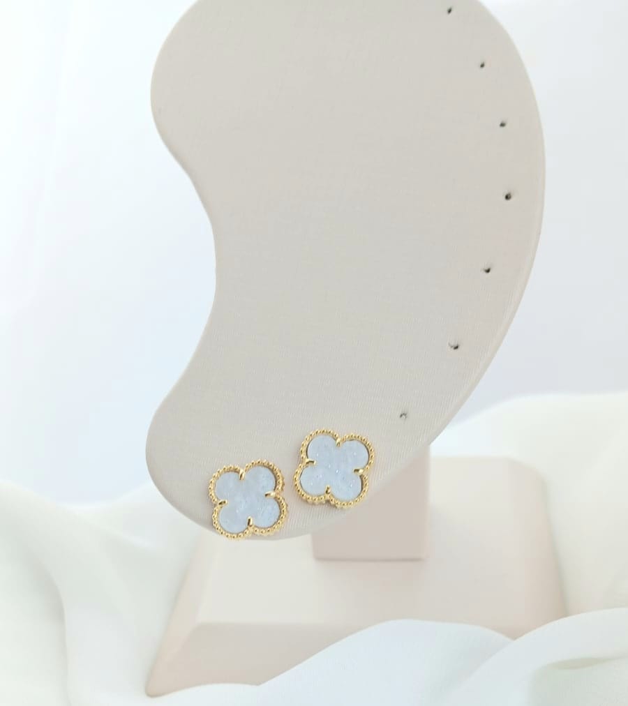 Brinco Pequeno Trevo Pedra Branca B.Ouro