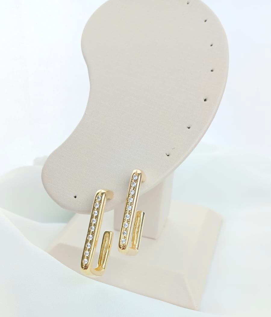 Brinco Retangular Médio Toda com Pedras de Zircônias B.Ouro quantidade