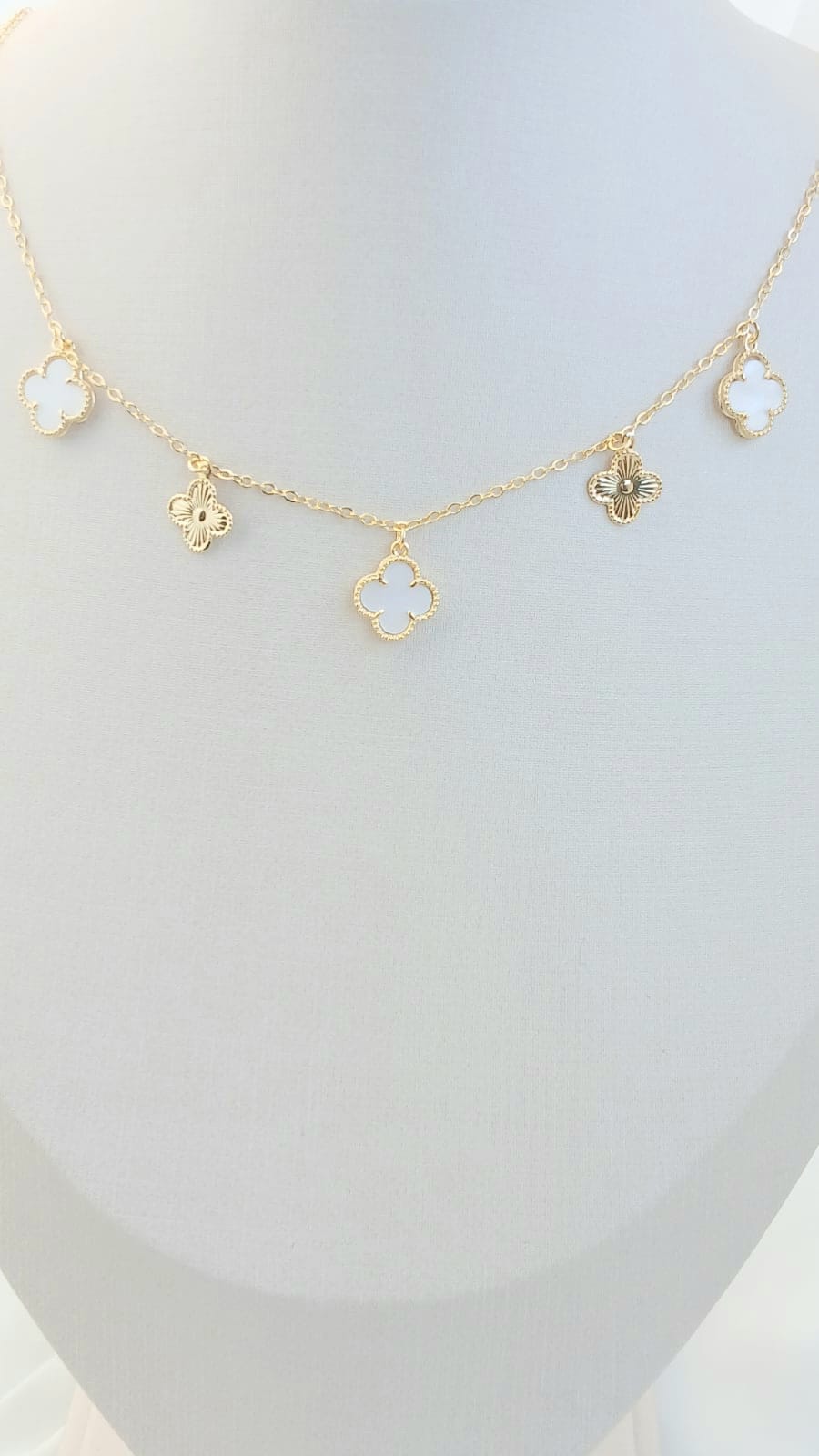 Choker com 01 Trevo Madre Pérola B.Ouro