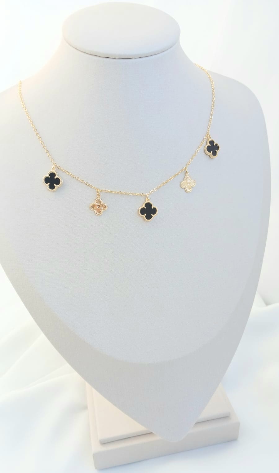 Choker Trevo Mix Pedra Ônix e Banho de Ouro