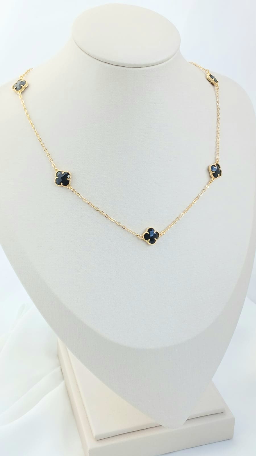 Colar com Vários Pingentes de Trevo Ônix B.Ouro 18K quantidade