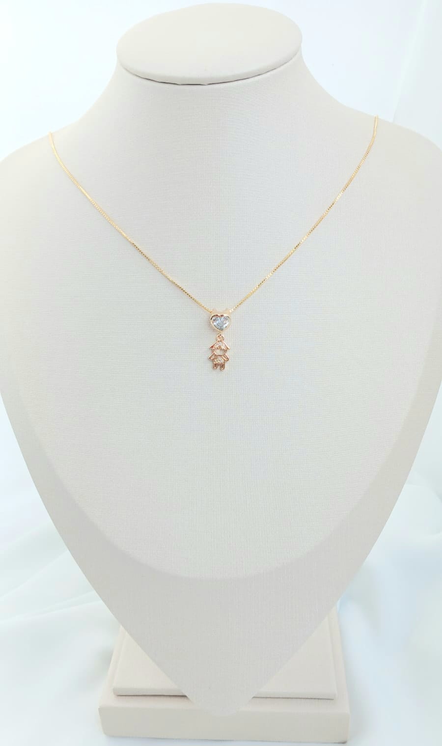 Colar com Pingente Coração e Chave com Pedras de Zircônias