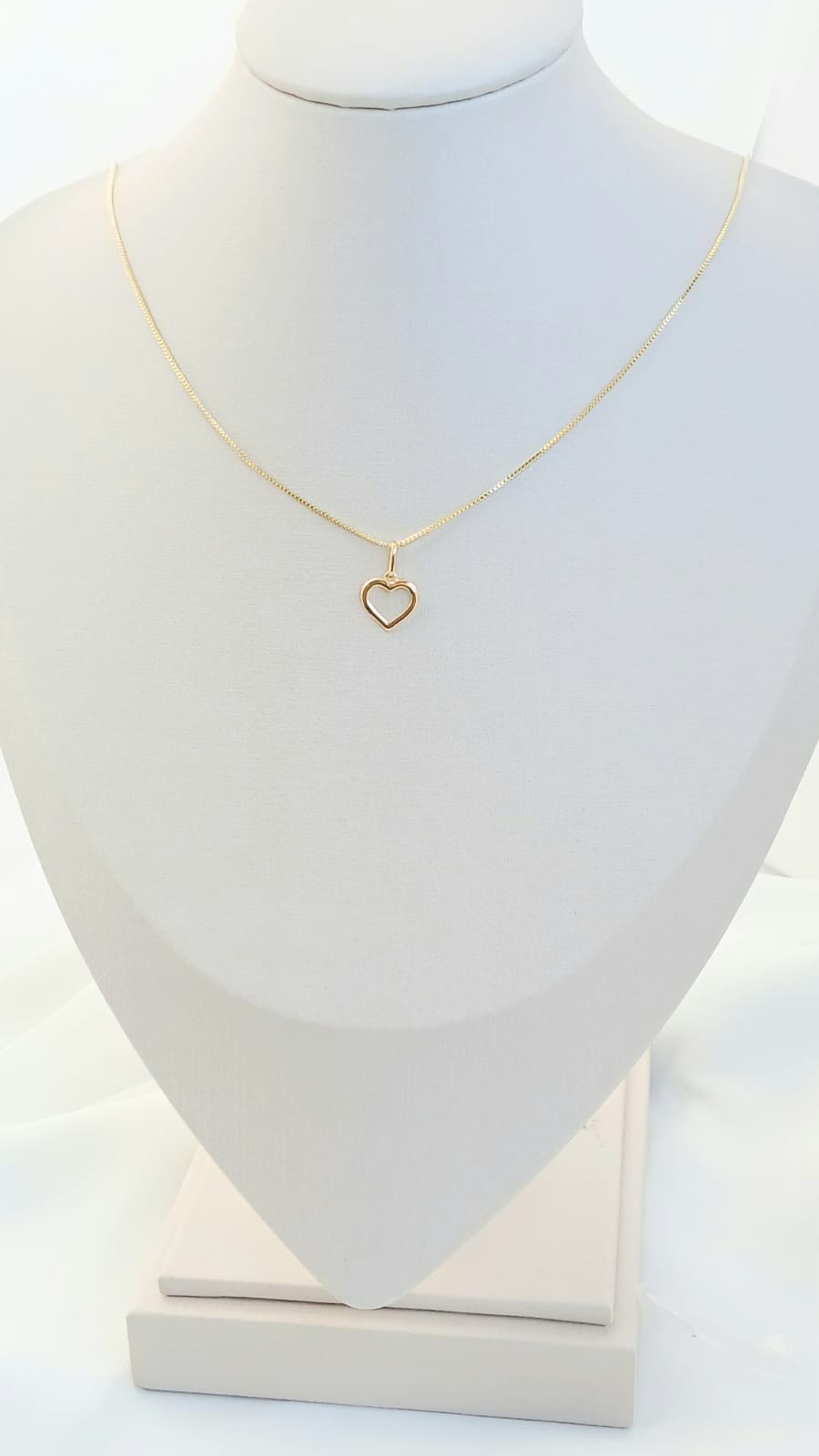 Colar Pingente Coração Pequeno Vazado no Banho de Ouro 18K