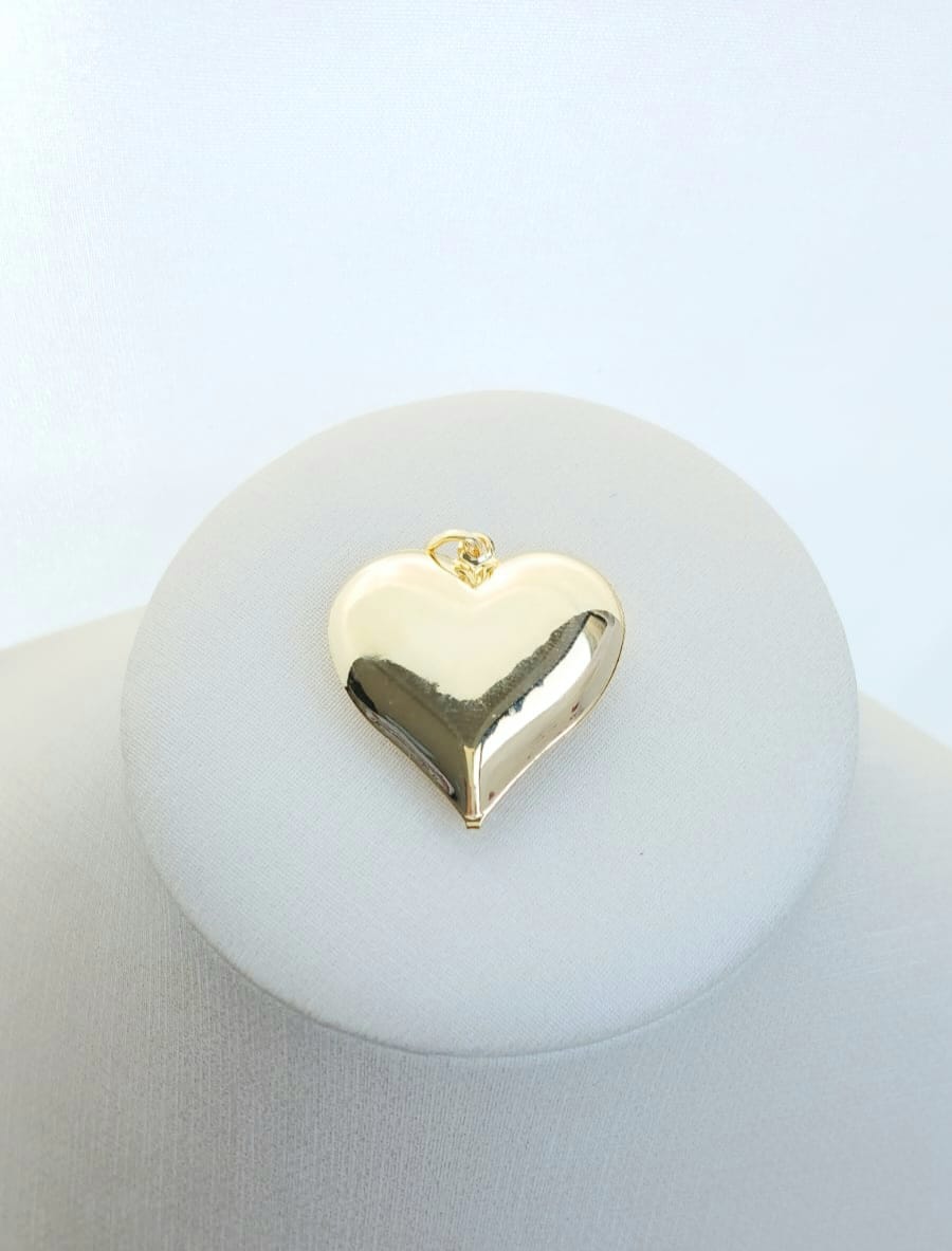 Pingente Coração Grande e Liso no Banho de Ouro 18K