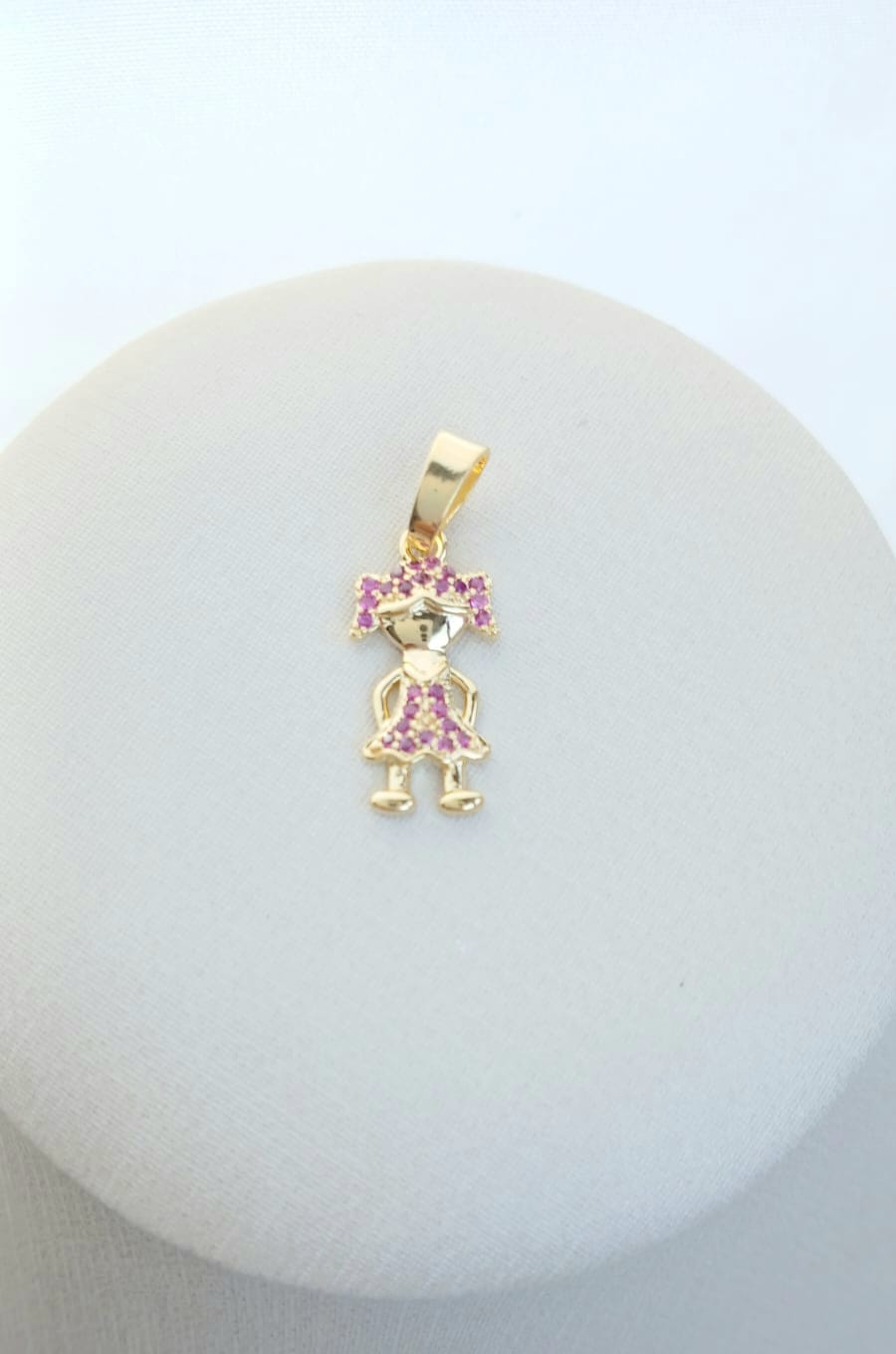 Pingente Menina com Mini Pedras de Zircônias Vermelhas B. Ouro 18k quantidade