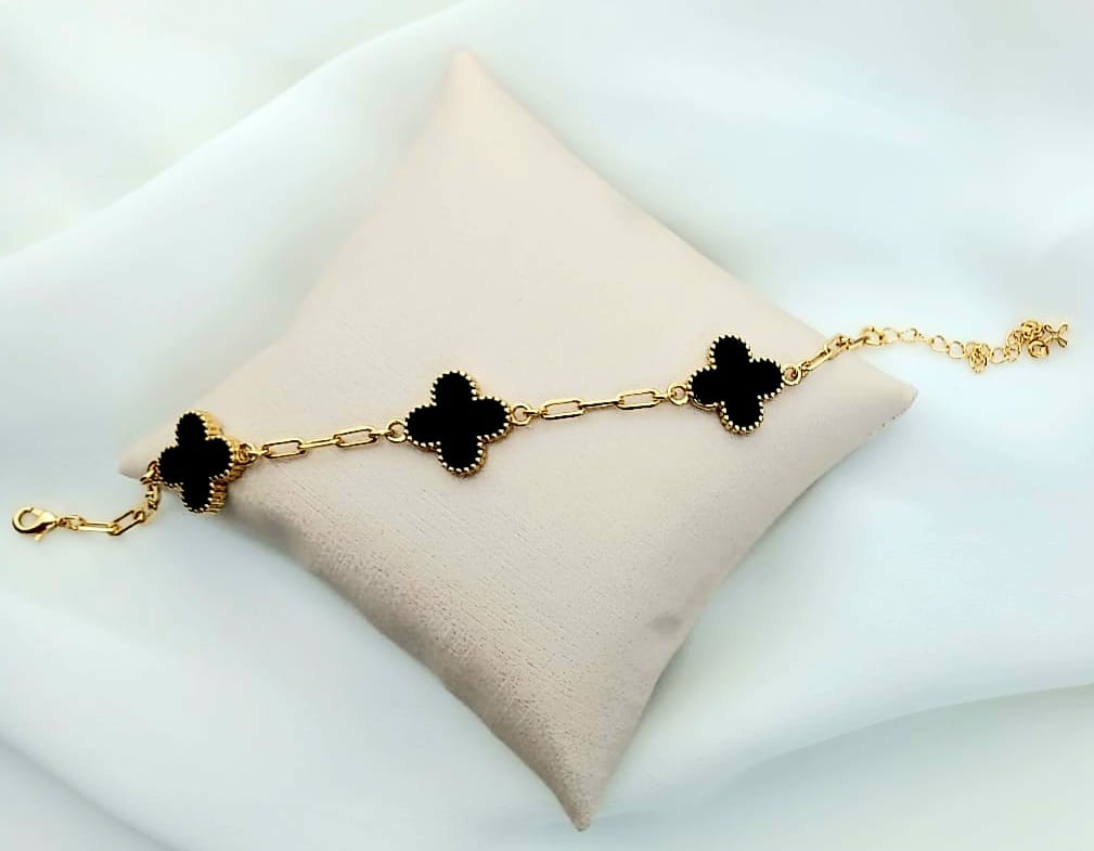 Pulseira C/1 Pingente Trevo cor Ônix B.Ouro