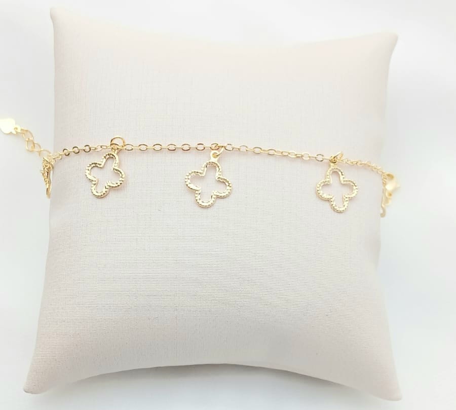 Pulseira Pingente Trevo Vazada B.Ouro quantidade