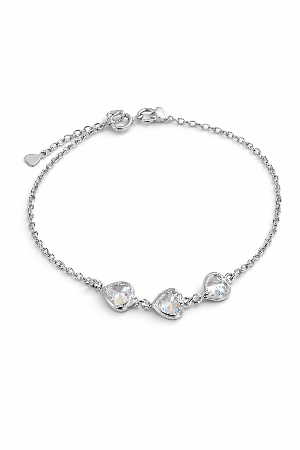 A Pulseira Três Corações Cristal em Prata 925 é uma peça delicada e cheia de brilho, perfeita para quem valoriza detalhes sofisticados. Seu design traz três corações com cristais reluzentes, que captam a luz de forma encantadora e adicionam um toque de elegância ao visual.